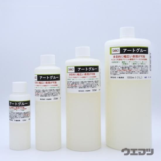 アートグルーの原液で絵具を溶いたあと、使用したアートグルーと同分量から2倍くらいの水で希釈してご使用ください。